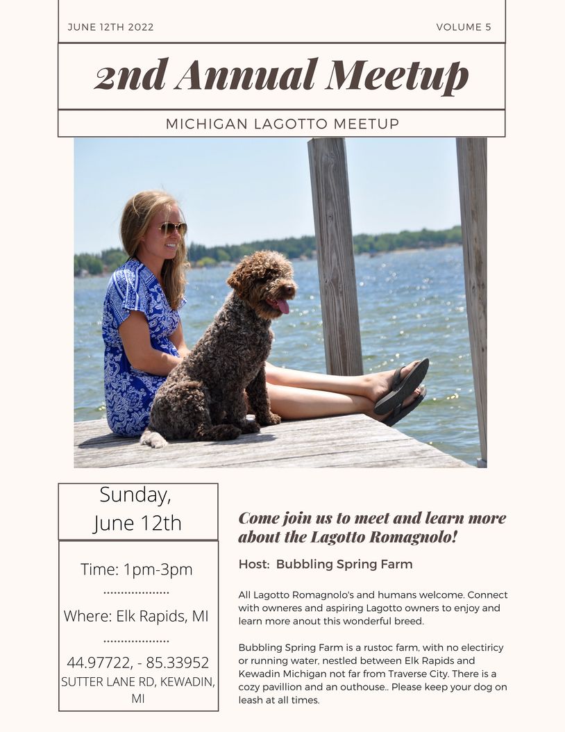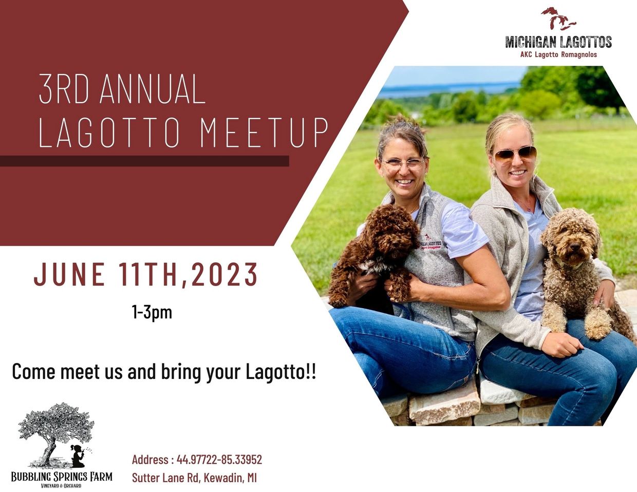 Come out and connect with Lagotto owners and aspiring Lagotto owners as well as meeting some of our crew here at Michigan Lagotto! Bubblin Spring Farm is a rustic farm nestled between the Grand Traverse Bay and Torch Lake just north of Elk Rapids, MI.